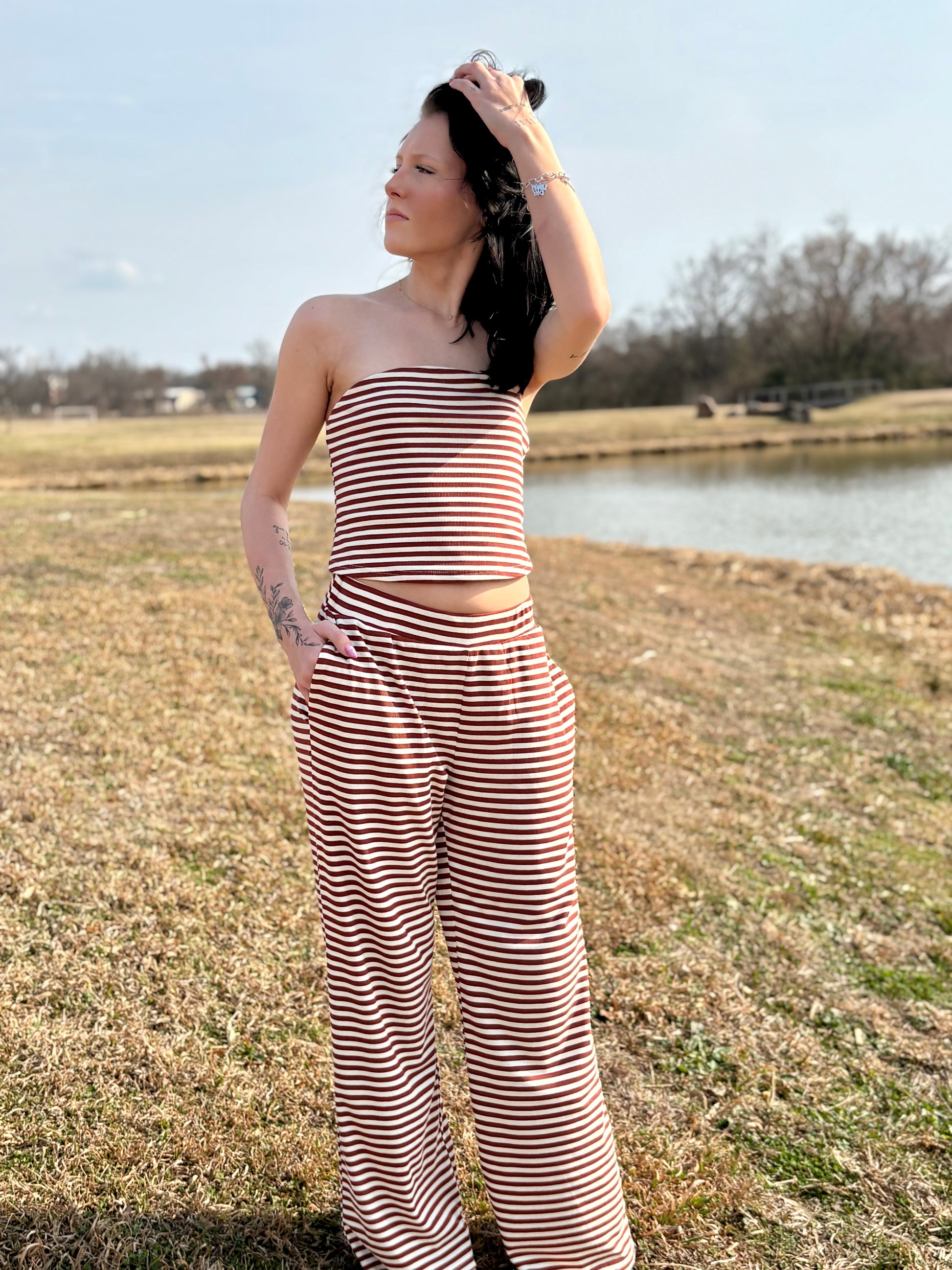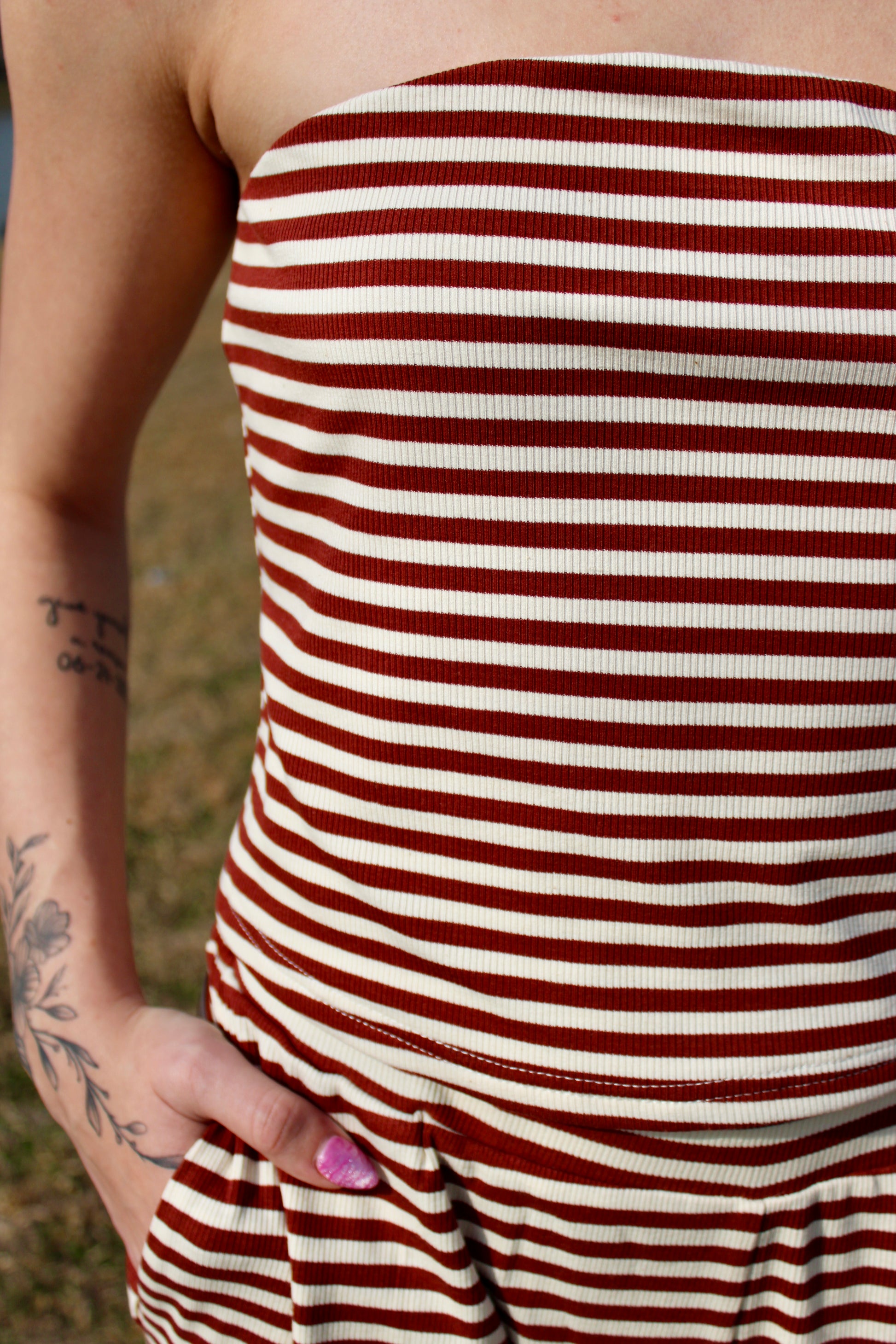 Mix comfort with attitude in the Piper Tube Set—a striped two-piece that actually stays put. The cinched back keeps the tube top fitted and fresh, no sagging after a few wears.